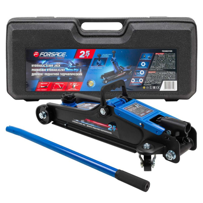 Домкрат подкатной гидравлический 2.5т (h min 90мм, h max 400мм) в кейсе Forsage F-T830031DS