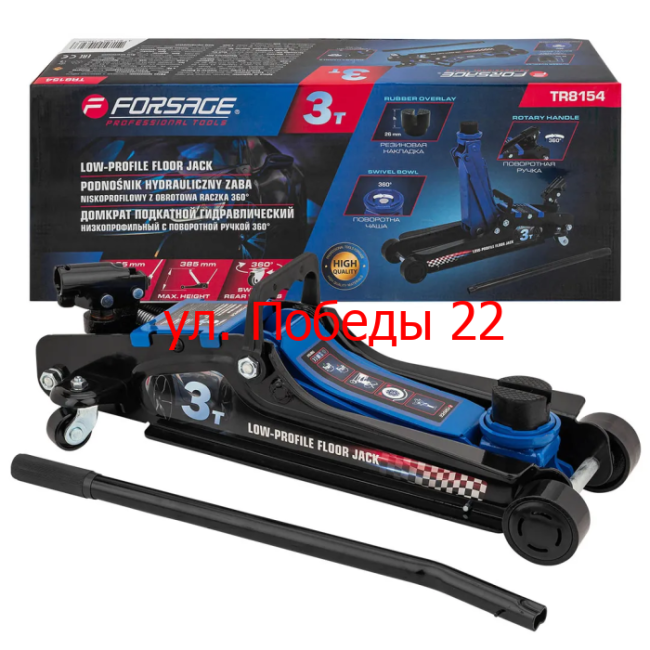 Домкрат подкатной гидравлический низкопрофильный с поворотной ручкой 3т