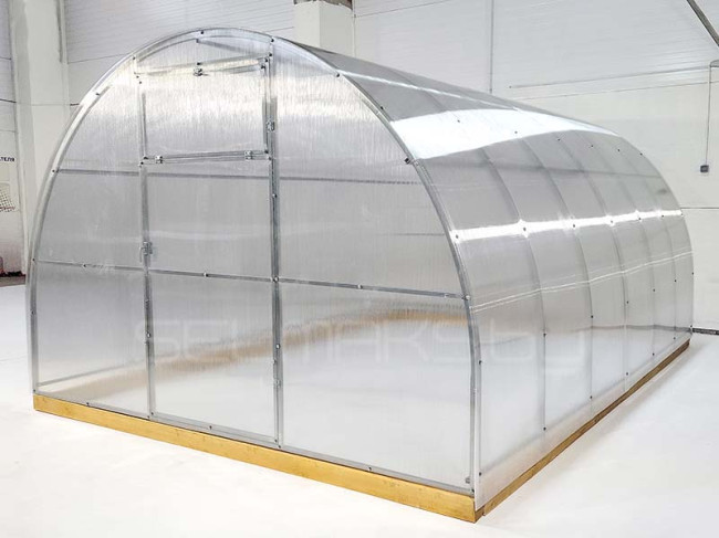 3. Простота сборки. Т.к. дуги в такой конструкции цельные, а не состоят из частей, а торцы уже сварены и в них уже вставлены двери с форточками, то для ее установки Вам понадобится минимум времени и усилий. При покупке же сборной теплицы, люди, как правило, прибегают к услугам монтажников. Что, к слову, совсем недешево: сборка самого простого шестиметрового каркаса обойдется дорого.