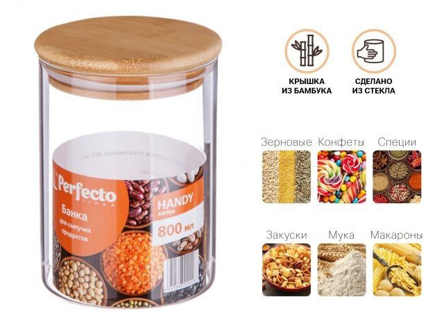 Банка для сыпучих продуктов стеклянная 800 мл, серия Handy, PERFECTO LINEA
