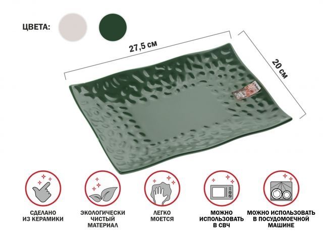 Блюдо керамическое, 27.5х20 см, серия ASIAN, зеленое, PERFECTO LINEA