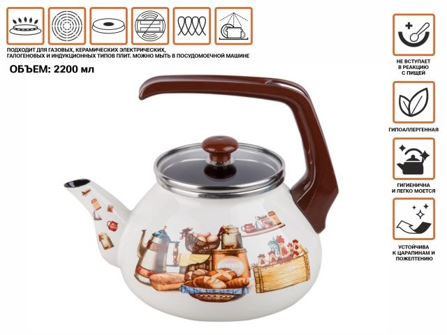 Чайник стальной эмалированный, 2.2 л, серия Традиции, PERFECTO LINEA (диаметр 11,5 см, высота 12 см)