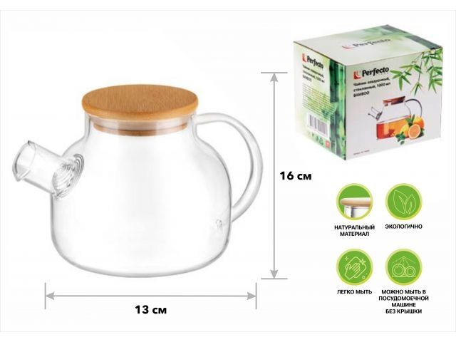 Чайник заварочный, стеклянный, 1000 мл, BAMBOO, PERFECTO LINEA