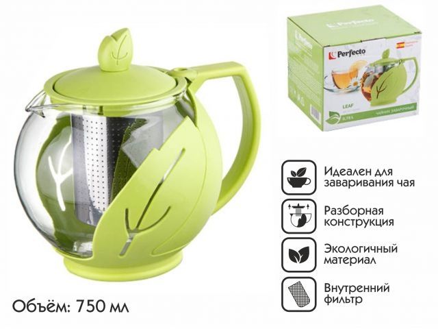 Чайник заварочный, стеклянный, 750 мл, LEAF, PERFECTO LINEA