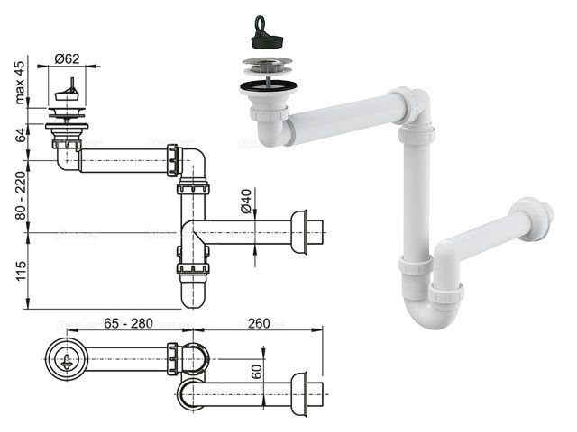 Cифон для умывальника экономящий пространство D63, Alcaplast