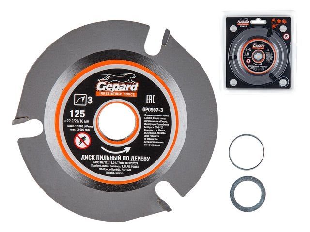 Диск пильный 125х22.2/20/16 мм 3 зуб. по дереву GEPARD (для УШМ, твердоспл. зуб)