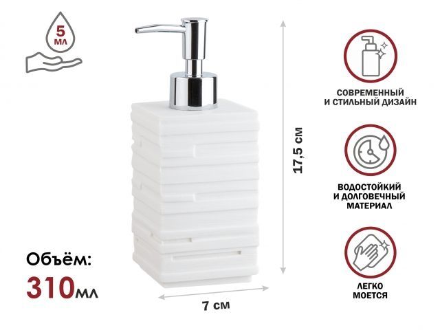 Диспенсер (дозатор) для мыла WEATHERED SAND, белый, PERFECTO LINEA (Композитный материал: полирезин под натуральный камень)