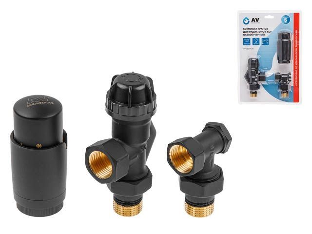 Комплект кранов осевой 1/2" для радиатора Черный, AV Engineering (инд. упак.) (M30x1.5)