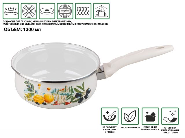 Ковш стальной эмалированный, 1.3 л, серия Халкидики, PERFECTO LINEA (подходит для всех типов плит, включая индукцию)