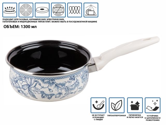 Ковш стальной эмалированный, 1.3 л, серия Мон Жардин, PERFECTO LINEA (подходит для всех типов плит, включая индукцию)