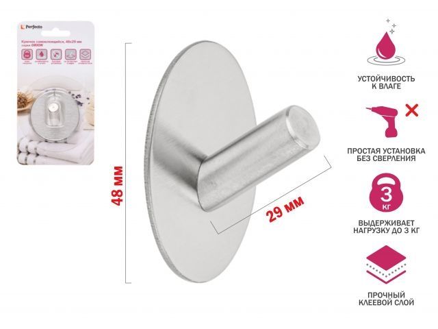 Крючок самоклеящийся ORION, нержавеющая сталь, блистер, PERFECTO LINEA