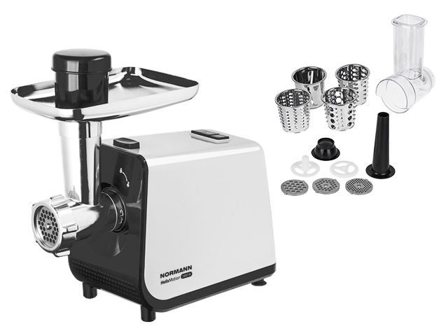 Мясорубка электрическая AMG-552 NORMANN (1800 Вт, решетка 3/5/7 мм, реверс, овощерезка, терка для драников)