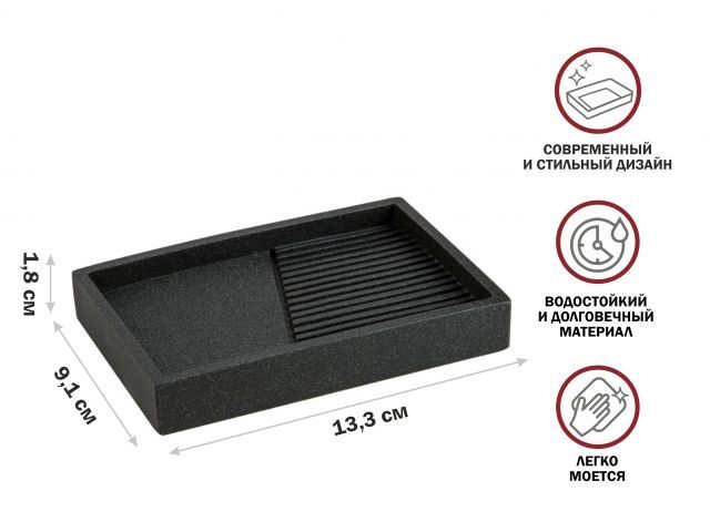 Мыльница ELEMENT, черная, PERFECTO LINEA (Композитный материал: полирезин под натуральный камень)