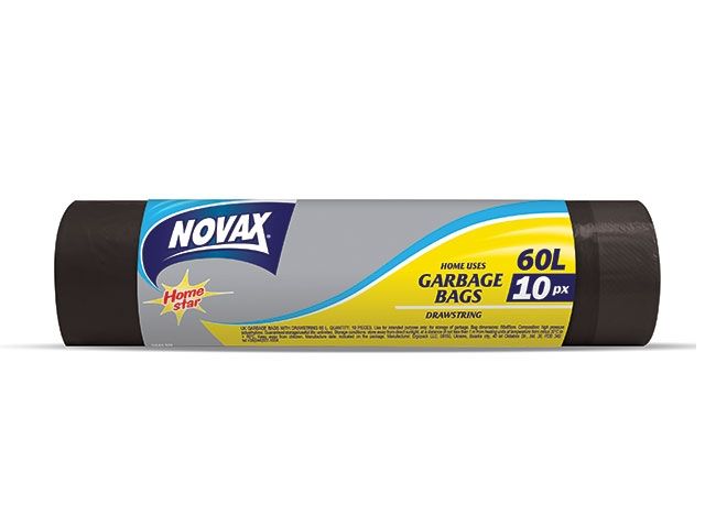 Пакеты для мусора 60л/10шт c затяжкой NV (Материал / Цвет: LDPE / Чёрный . Размер единицы: 56 x 65 см.Толщина: 14 мкм) (NOVAX)