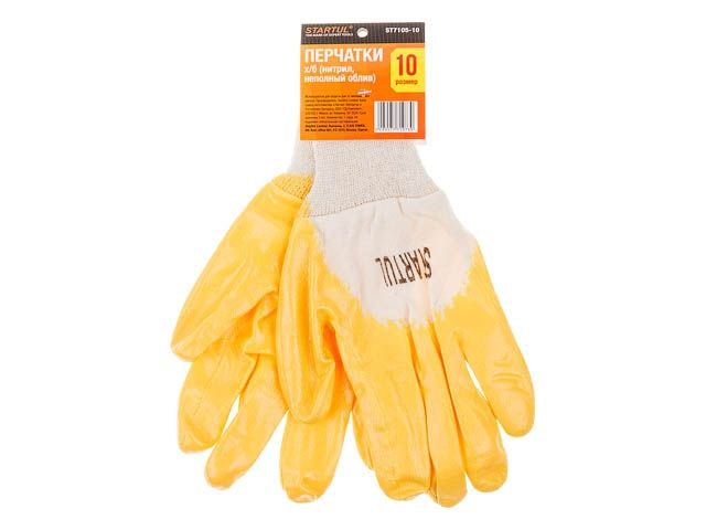 Перчатки х/б, нитриловое покрытие (неполный облив), манжет резинка, 10 р-р STARTUL