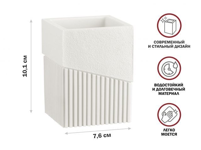 Стакан для зубных щеток ELEMENT, белый, PERFECTO LINEA (Композитный материал: полирезин под натуральный камень)