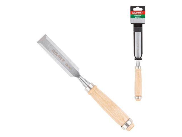 Стамеска плоская 22мм ВОЛАТ (деревянная рукоятка, металлическое кольцо)