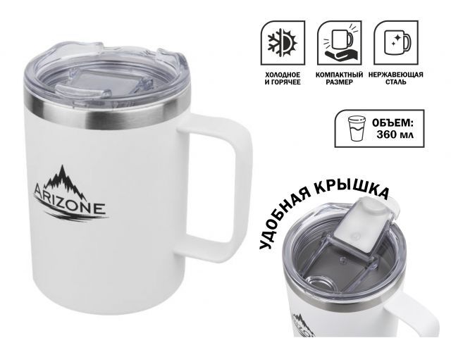 Термокружка, 360 мл, нержавеющая сталь, белая, ARIZONE