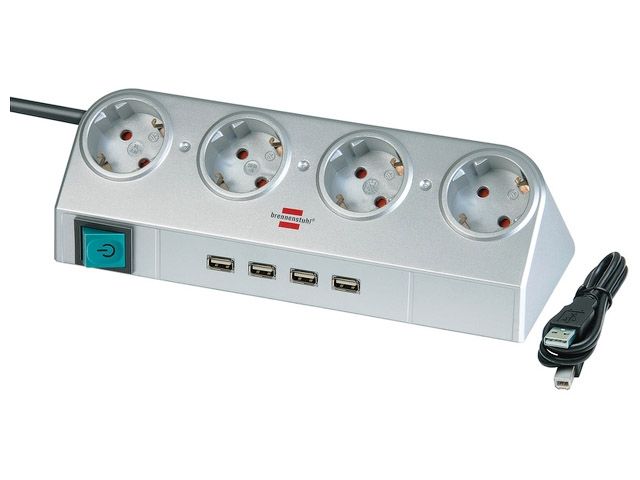 Удлинитель настол. 1,8м (4 роз., 4 USB порта) серебро Brennenstuhl (кабель H05VV-F 3G1,5)