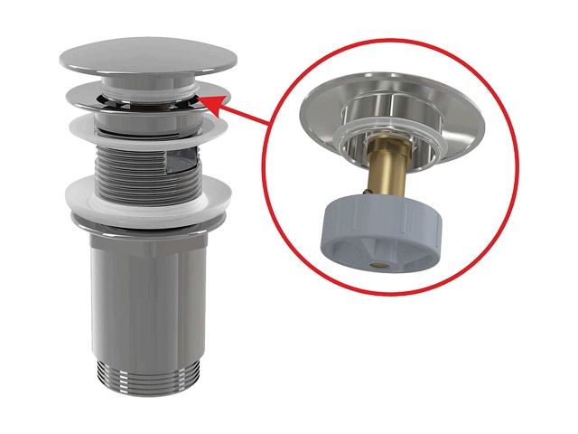 Водослив для умывальника click/clack 5/4, цельнометаллический с большой заглушкой, Alcaplast