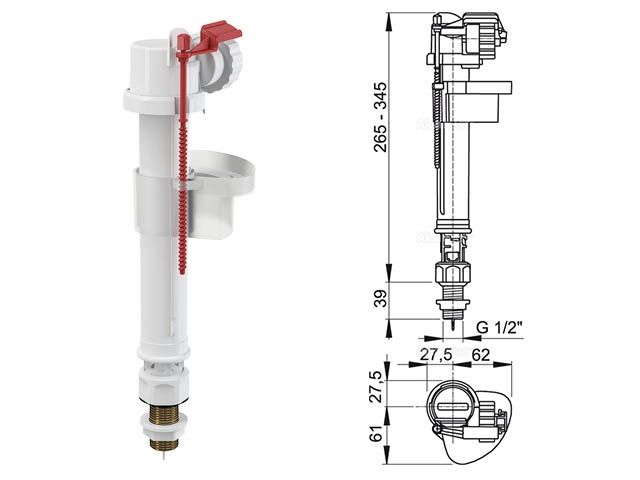 Конструкция позволяет регулировать высоту механизма в зависимости от высоты бачка;